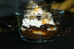 - Place half of the edible soil mix on the bottom of each dish, then the banana slices and drizzle with butterscotch and basil sauce. Top with a scoop of vanilla ice cream or some whipped cream and enjoy 🙂